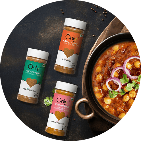 Elevate your snacks with the tangy, aromatic blend of On1y Low Sodium Fruit Chaat Masala. Crafted with heart-friendly ingredients, this spice mix adds bold flavour without excess salt, ensuring a tasty, guilt-free experience for your snacks and salads.