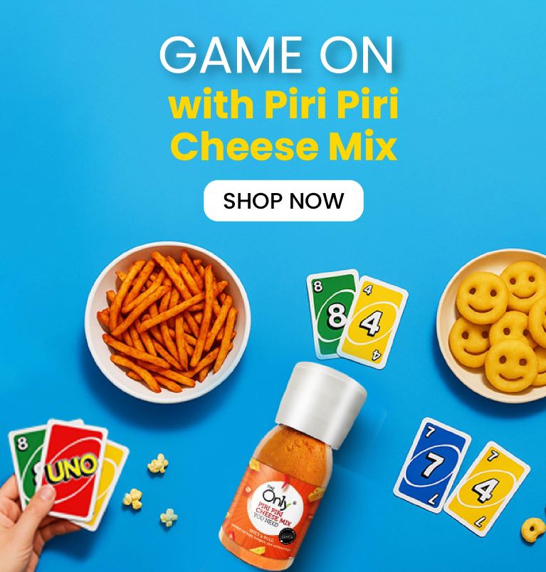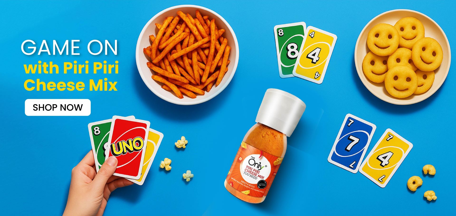 Turn up the heat with On1y Piri Piri Cheese Mix — a bold fusion of creamy cheese and spicy piri piri. This irresistible blend brings a kick of zest and warmth to your snacks, fries, or dips, adding a gourmet twist that’s delightfully fiery yet perfectly balanced.2. Popcorn Cheese Mix.