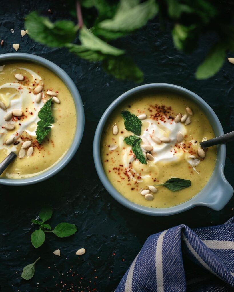 Nothing says summer very like chilled soup. Make this healthy, vegetarian fresh Mango Yogurt Basil Soup recipe. Energizing elements such as yogurt, buttermilk, and dry basil.