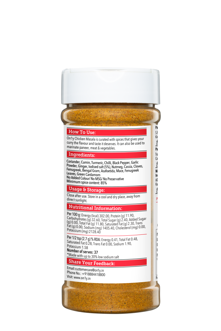 Transform your chicken dishes with On1y Low Sodium Chicken Masala. This expertly crafted blend packs the heat and rich, aromatic flavours you crave, while being mindful of heart health with its low-sodium formulation. Perfect for anyone who loves flavour without compromise.