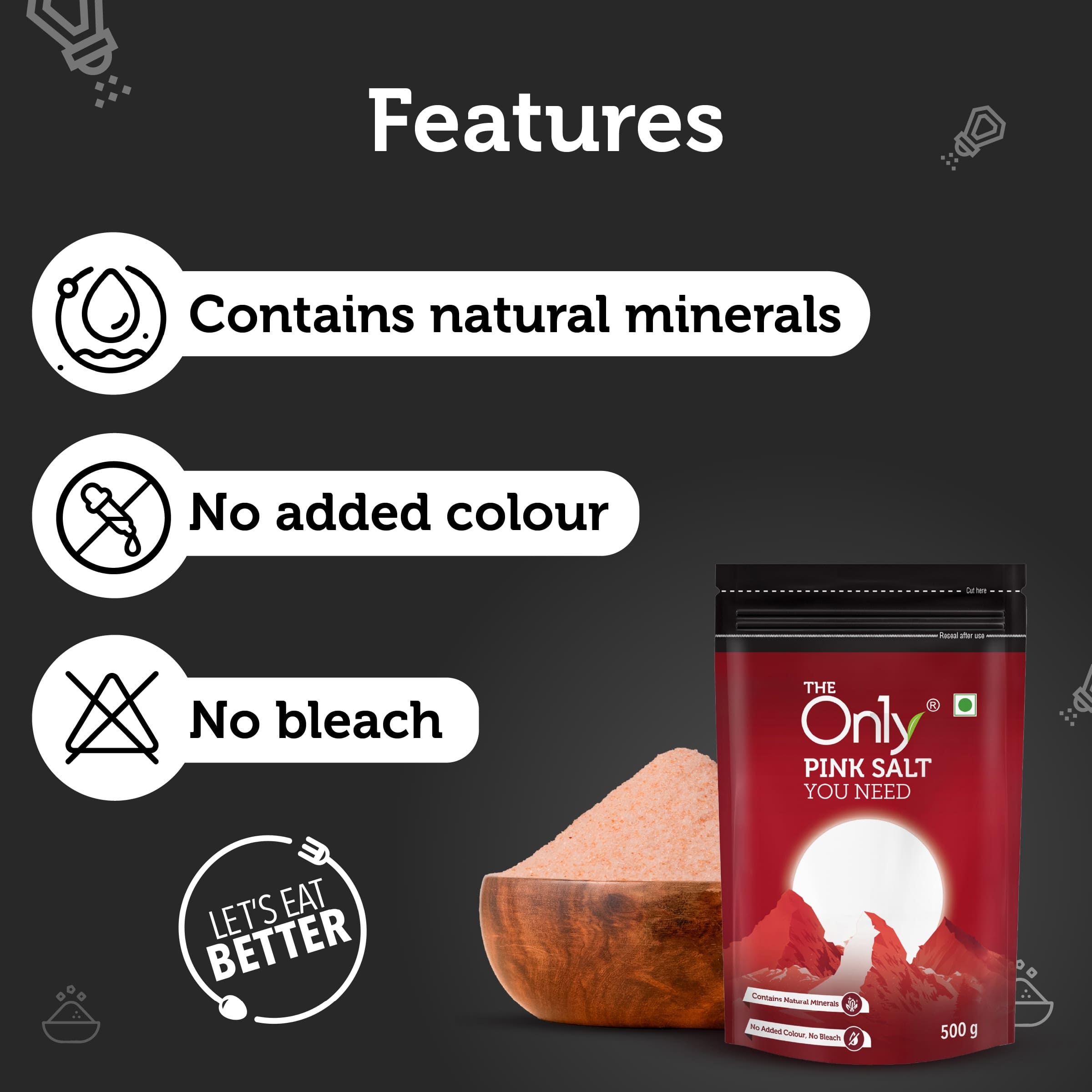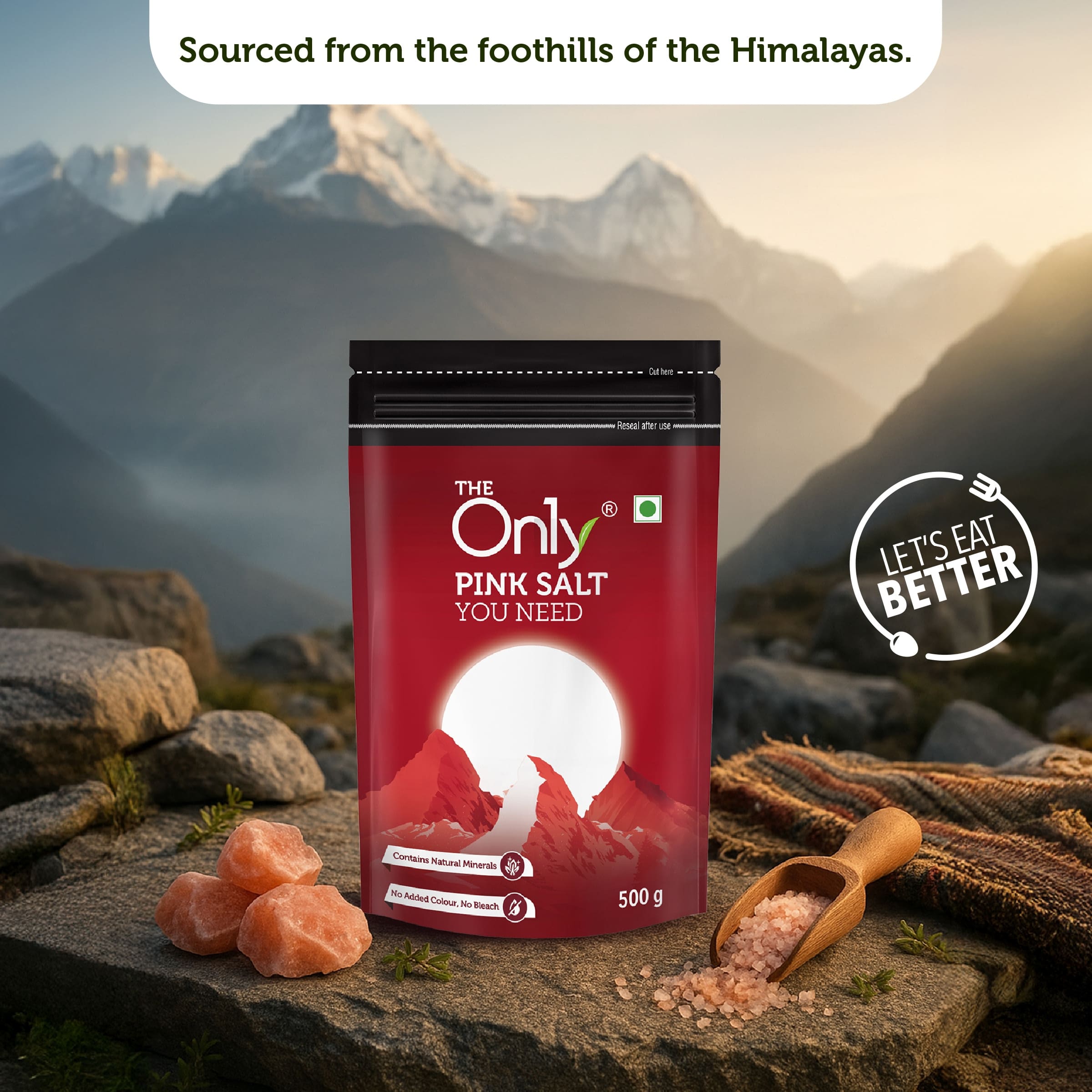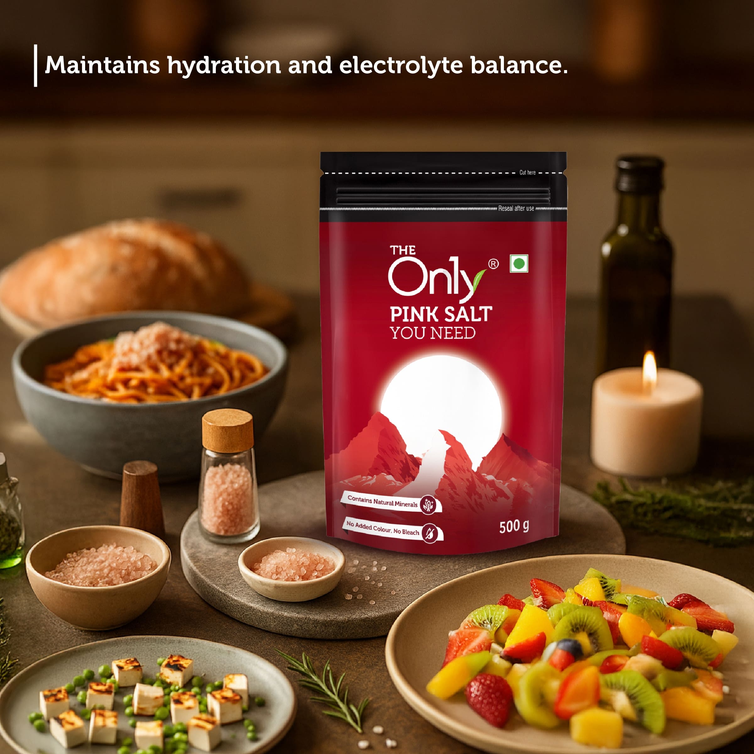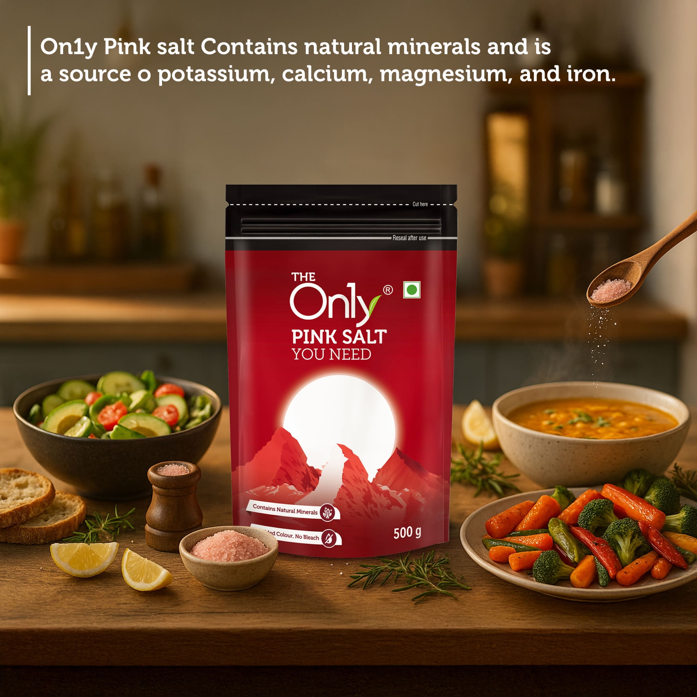 On1y Pink Salt 500g – 100% natural and mineral-rich Himalayan pink salt. Perfect for cooking, seasoning, and healthier everyday meals. No additives, pure wellness in every grain.