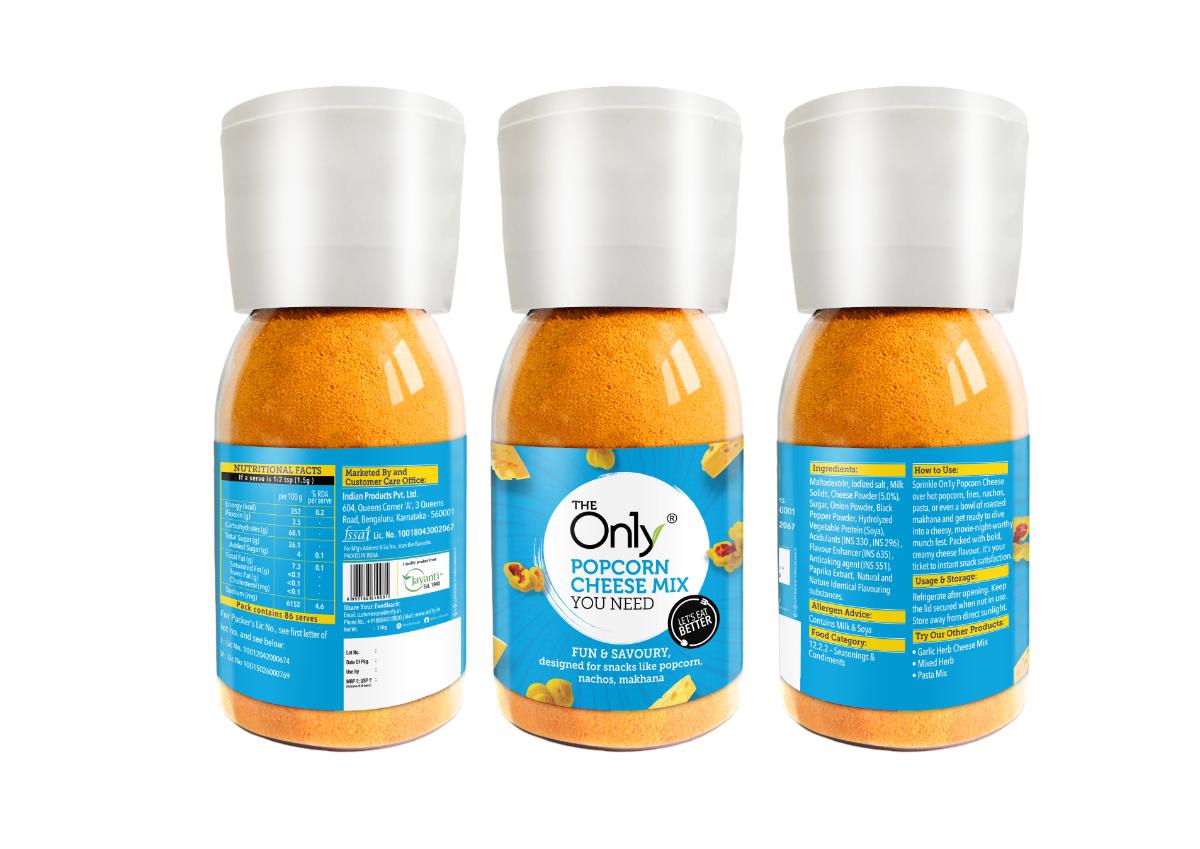 Turn up the heat with On1y Piri Piri Cheese Mix — a bold fusion of creamy cheese and spicy piri piri. This irresistible blend brings a kick of zest and warmth to your snacks, fries, or dips, adding a gourmet twist that’s delightfully fiery yet perfectly balanced.2. Popcorn Cheese Mix.